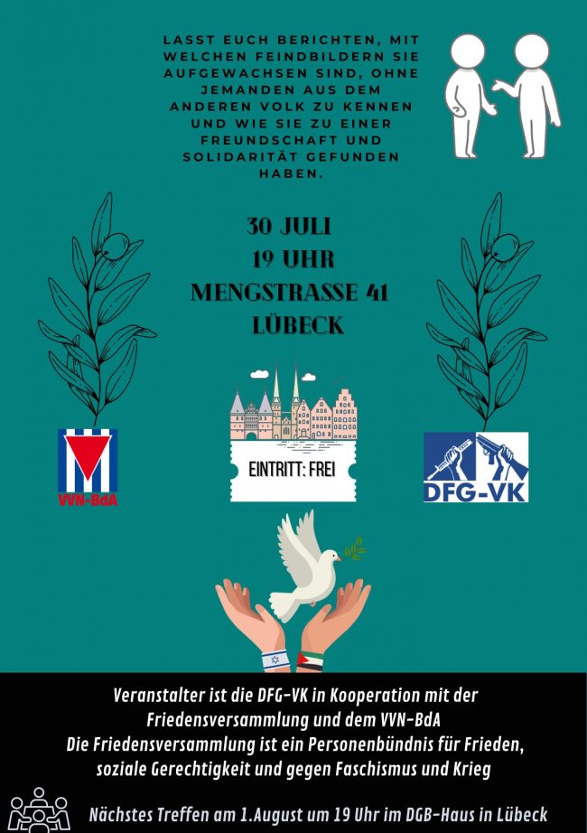 Kultur gegen die Kulturlosigkeit der Kriegslust Die Deutsche Friedensgesellschaft – Vereinigte KriegsdienstgegnerInnen ist in Flensburg aktiv, veranstalten Ostermärsche und Friedensfeste, zuletzt am Antikriegstag und jetzt, als besondere Kulturveranstaltung ein Konzert mit dem Songpoeten und Friedensberichterstatter Tino Eisbrenner. Er ist als Aktivist bei vielen Friedensaktionen dabei und macht jährlich ein Festival „Musik statt Krieg“ auf seinem…