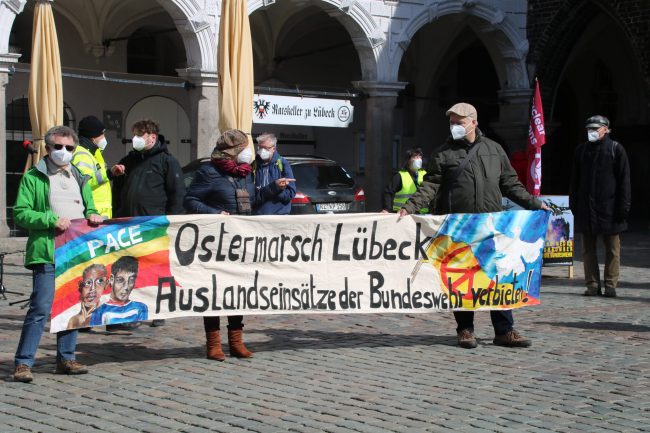 Den diesjährigen Ostermarsch Lübeck hatten VVN, DFG-VK und Food Not Bombs am Ostersonnabend organisiert. Unter Infektionsschutzbedingungen gab es eine Demonstration vom Rathausmarkrkt zum Gewerkschaftshaus und zurück. Auf der Zwischenkundgebung am Gewerkschaftshaus sprachen Berith Jordan von ver.di. und Christian Dankworth von Food Not Bombs. Beim Auftakt hatt Bernd Meimberg von der VVN geredet, auf der Abschlusskundgebung…