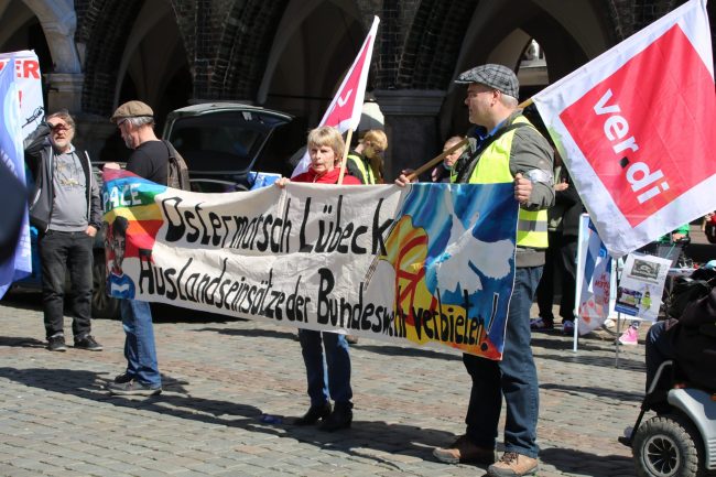 Die DFG-VK Gruppe Lübeck hat den Ostermarsch HL mitorganisiert, die DFG-VK Gruppe Bad Oldesloe war mit einem großen Infotisch, Fahnen und Transparenten sowie einem Redebeitrag vertreten. Rede von Detlef Mielke (DFG-VK Bad Oldesloe) Wir verurteilen den Überfall der russischen Armee auf die Menschen in der Ukraine. Diese Zeile hätte ich gern als erste auf dem…