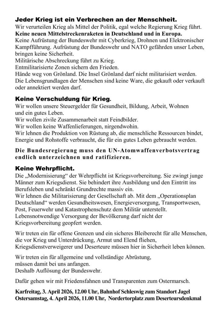 Ostermarsch 2026 in Flensburg und Jagel